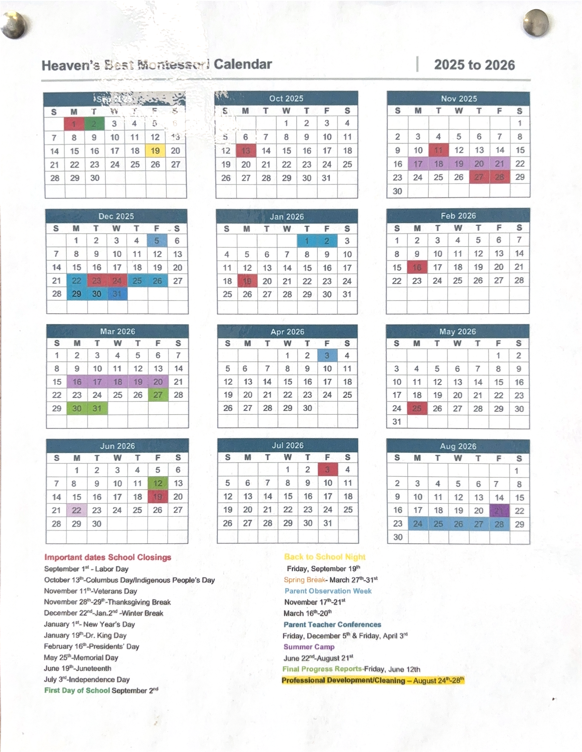 Heaven’s Best Montessori Calendar 2025-2026